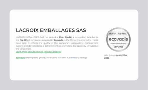 ¡Lacroix Emballages mejora su puntuación EcoVadis y conserva su medalla de plata!